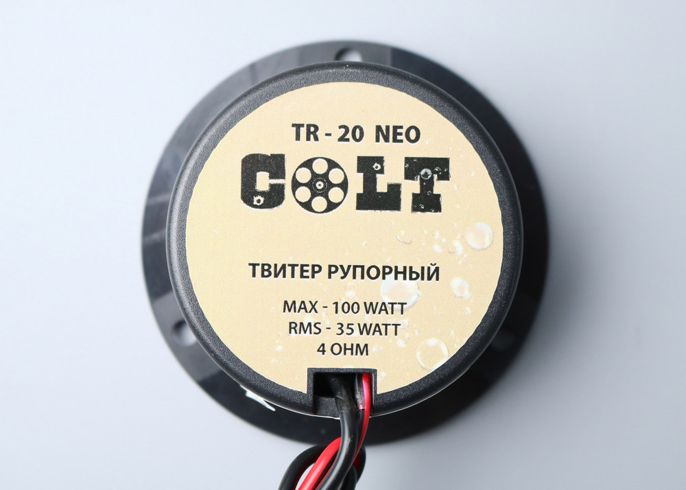 COLT TR 20 neo Артикул: 000 Производитель: COLT Количество: + - шт. Цена: 1560 руб. / шт. Добавить в корзину твитер рупорный RMS 35 Вт MAX 100 Вт Сопротивление 4 Ом Диаметр динамика: 65 мм Монтажная глубина: 24 мм Монтажный диаметр: 51 мм INSTAGRAMS by @
