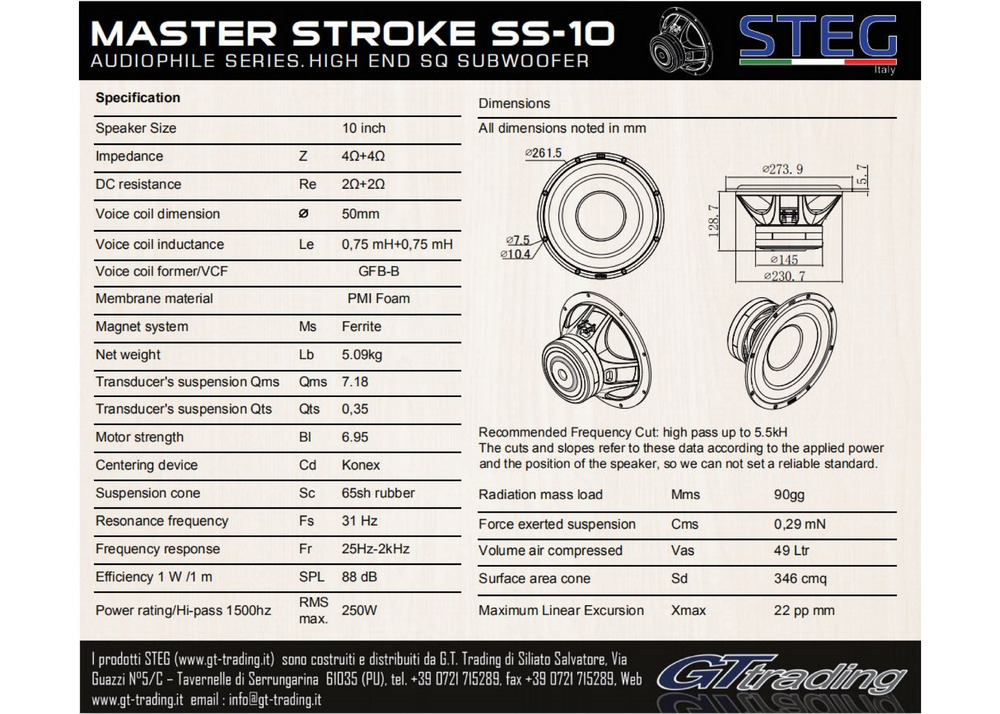 STEG SS 10 Артикул: 000 Производитель: STEG Количество: + - шт. Цена: 48438 руб. / шт. Добавить в корзину SQ сабвуфер Hi-end класса 10 дюймов INSTAGRAMS by @