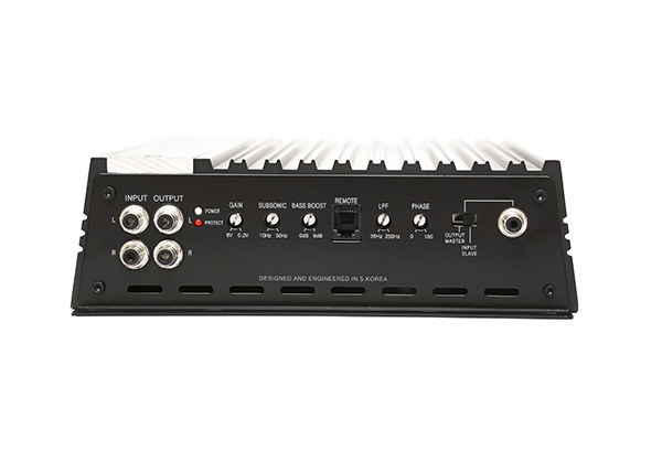 Лучший вариант схематехники, разработанный на базе производства в Южной Корее Стабильно работает на нагрузку 1 Ом. Мощность 1500Вт на нагрузку 1 Ом, при напряжении 14.8 вольта и К.Н.И. на уровне ~5%, что является нормой для сабвуферного звена. Дистанционный регулятор уровня входной чувствительности имеет светодиодный индикатор превышения порога допустимых искажений. Возможна работа в режиме «мостового включения»