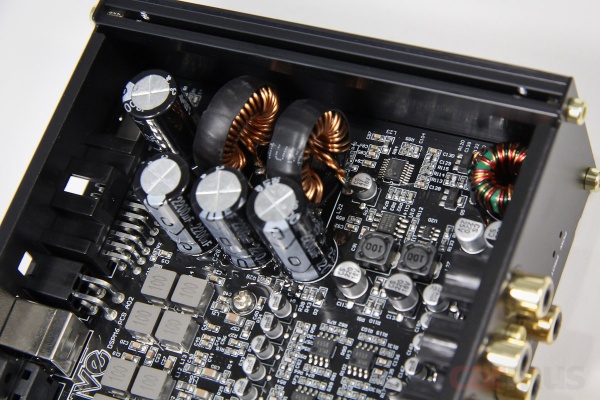 Несмотря на компактность самого корпуса, всё содержимое, включая блок питания и усилительную часть, уместилось на единой плате.
