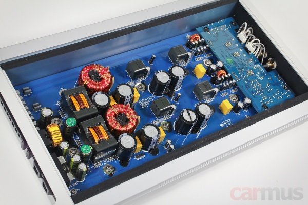 На чём построен D-класс, достоверно узнать не удалось – на верхней части платы отдельных драйверов не видно, все силовые элементы скрыты под платой и прижаты к корпусу. Ковырять уж не стал.
