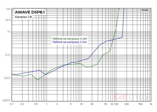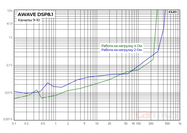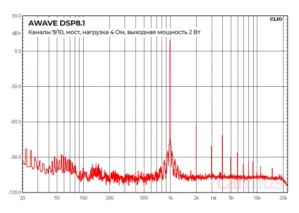 Мощностные параметры Awave DSP8.1, каналы 9/10 (измерение на 1 кГц):