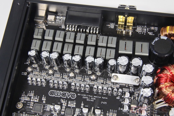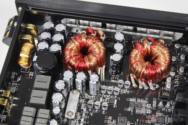 Всё скомпоновано на одной общей плате. Блок питания – двойной, что должно хорошо сказаться на силовых показателях (речь, как понимаете, не только о формальных циферках мощности). Конкретно в данном случае это особенно актуально, поскольку пару каналов 9/10 предполагается использовать как сабвуферную.