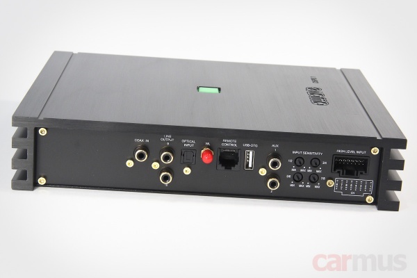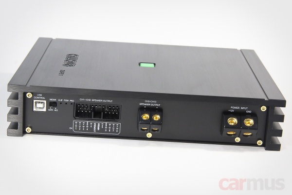 Что касается силового потенциала, то для 8-канального усилителя он не такой уж и маленький – ограничение сигнала начинается на отметке под сотню Ватт на 4-омной нагрузке. На 2-омной усилитель форсируется до полутора сотен Ватт на канал.