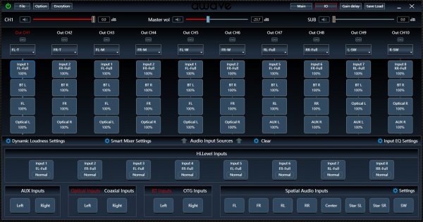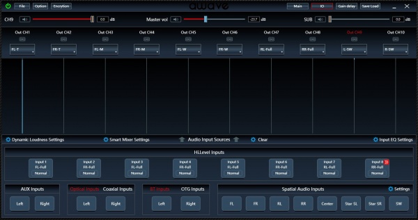 В модельном ряду Awave есть процессорные девайсы на разных платформах, причём уже нескольких поколений. Поэтому на сайте бренда в разделе софта скопилось около полутора десятка программ. Конкретно для DSP8.1 нужна версия DSP PC Tool 3.8.18 (на момент этого теста она, к слову, самая свежая).