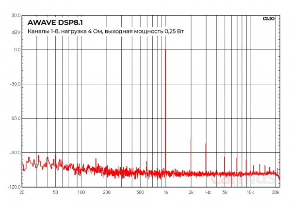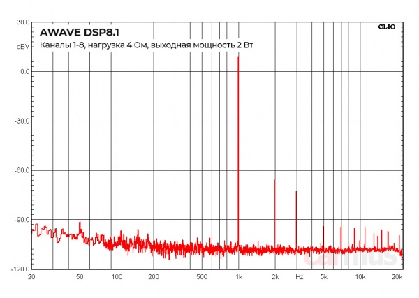 В основных каналах 1-8 спектр достаточно чистенький, обошлось без частокола гармоник. Особых артефактов, попадающих в звуковой диапазон, тоже вроде бы нет. По этой части можно поставить зачёт.