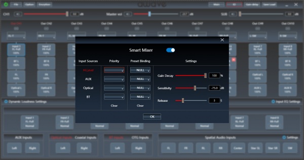 А ещё процессор позволяет поиграться с приоритетностью источников и автоматическим переключением между ними: