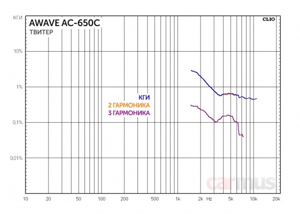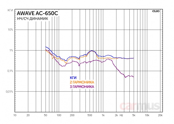 С понижением частоты рост искажений плавный. Так что проблем и каких-то жёстких ограничений при выборе сабвуфера и настройке стыка с ним не ожидается.