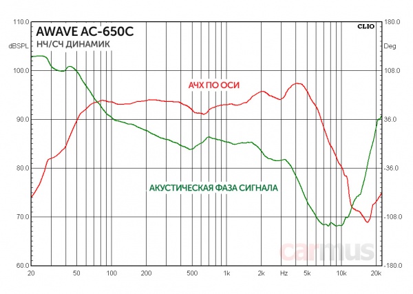 Единственное, к чему хоть как-то можно придраться, – лёгкий локальный резонанс в районе 600 Гц (скорей всего, центрирующая шайба, его и на импедансной кривой ещё было видно). Но он несильный, «съедает» всего пару децибел в этой области.