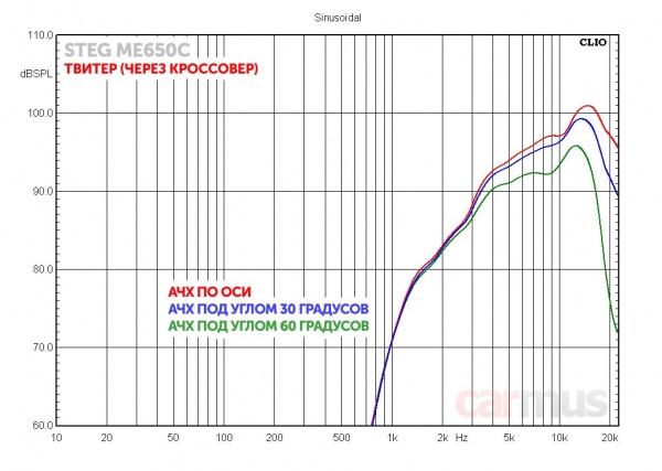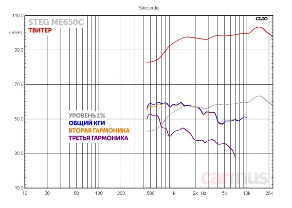С искажениями у твитера полный порядок. Разве что небольшое замечание – если акустику использовать в поканальной системе, подрезать его снизу лучше никак не ниже 5-6 кГц.