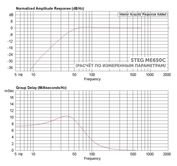 Измеренные параметры оказались достаточно близки к заявке, и первое, что привлекло внимание – крайне низкая для автомобильного применения добротность НЧ/СЧ динамика и невысокая резонансная частота. Получился действительно приличный такой ящичный мидбас. Масса подвижки, правда, достаточно высокая, так что акустика требует мощного усилителя с хорошим контролем. Это важно.