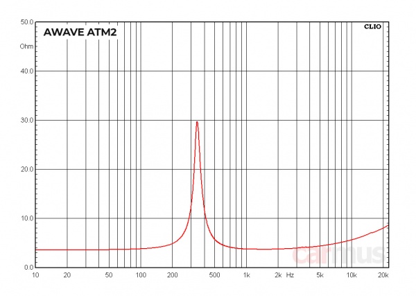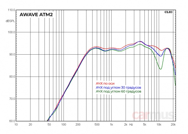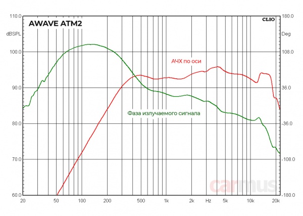 А вот дальше начинается странное. Помнится, упомянутые в самом начале и очень похожие внешне Steg SFF1 (по крайней мере, в версиях, выпущенных на тот момент времени) имели не самую ровную АЧХ в области ниже 1 кГц – с локальным резонансом в районе 700 Гц, приводящем к набегу фазы и заметному провалу отдачи в этой области. Это заставляло подрезать их снизу не ниже, чем от 1 кГц. А вот у Awave ATM2 в этом диапазоне всё неожиданно ровненько.