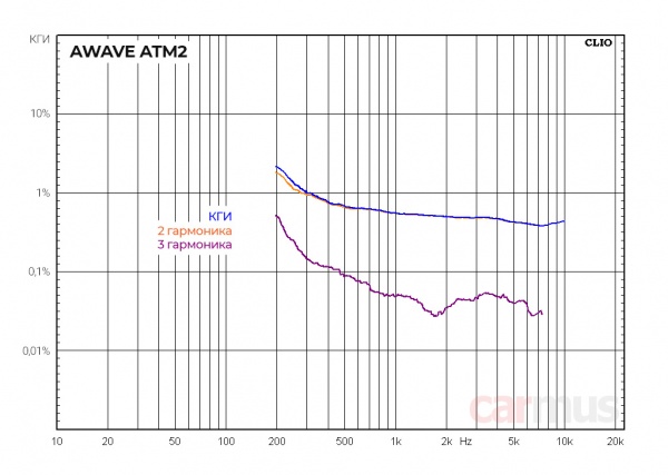 Каких-то резких выкрутасов гармонических искажений при снижении частоты тоже не обнаруживается – КГИ просто плавненько растёт ниже резонанса, чего, честно сказать, тоже совсем не ожидал от «твитеров-переростков».